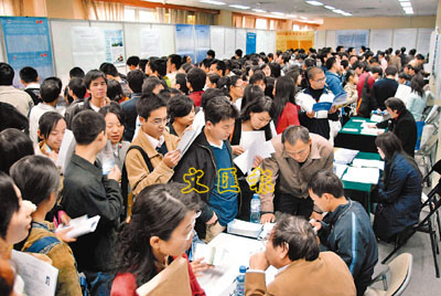 內地博士生面臨回內地發展和調低要求留港的兩難局面。圖為內地專門為研究生舉行的就業推介會情形。資料圖片