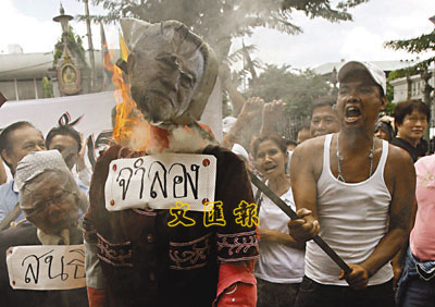 ■政府支持者焚燒兩名反政府示威者領袖的人像。 路透社