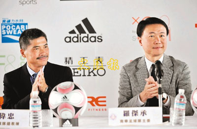 ■南華足主羅傑承和教練曾偉忠宣布該會慶祝100周年活動。新華社