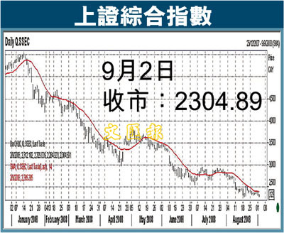 ¡@¤W®üªÑ¥«©P¤G¦bÅv«ªÑ½üµf¤U¶^ªº¼vÅT¤U¡AÁ`Åéºû«ù¤U¶^ÁͶաA¦Ó·í¤é¶^´T¥X²{¦¬¯¶¸ñ¶H¡C¦¥«ªÑ«ü§C¶}¦b2,308.69ÂI¡A«áÄò¤Ï¼u¥F¤O¡A¤j½L«K®i¶}·sªº¤@½ü§Ö³t¤U¶^¡AªÑ«üª½±µ³Q±À¨ì2,300ÂI¤§¤U¡A³Ì§C¨£2,284.92ÂI¡C¤È«á¥«³õӪѬ¡ÅDµ{«×¥[±j¡A§C»ù³q«HÃD§÷ªº¿³°_¡AP¨Ï¤j½L¥X²{µu¼Èªº¤Ï¼u¡A¥Ñ¦¹ªÑ«üÀ±¸É§¹¦¶¡§C¶}¯Ê¤f¡A¦Ó¦¹®É¥«³õ¶i¤@¨B¤W´¯Ê¥FÅv«ªÑªº¤ä«ù¡A½L¤¤¡u¤¤¥Ûªo¡vªÑ»ù³Ð·s§C¡A¾ÉPèè«ì´_ªº¤H®ð¤S¶i¤J¦BÂI¡AªÑ«ü³Ì«á«j±j¦¬¦b2,304.89ÂI¡A¶^20.24ÂI©Î0.87%¡C¦¨¥æ¸û¤W¤é´î¤Öªñ30»õ¤¸¬°266.2»õ¤¸¡Aºû«ù¶¥¬q©Êªº¦a¶q¤ô¥¡C