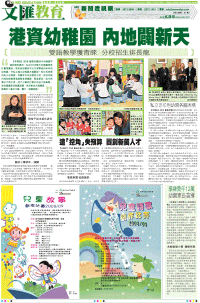 【本報訊】(記者 歐陽杏櫻)近年幼稚園巿場的競爭激烈,加之07/08學年幼稚園學券計劃落實後,家長紛紛轉投可以兌現學券的非牟利幼稚園,令私立獨立幼稚園大嘆難捱。部分具規模的私立幼稚園,其實早於內地開設分校,各校均指內地的經營環境遠較香港優勝:租金便宜、成本低兼且不愁生源,故不少學校打算在內地大展拳腳,有的擬擴展幼稚園版圖;有的索性大搞雙語教學的小學及中學,實行一條龍服務。