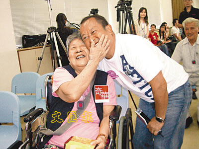 ■曾志偉很得老人家疼愛,坐輪椅的婆婆摟住他親吻一下。