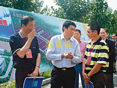 ■周口市川匯區區長張輝(中)陪同外商參觀企業