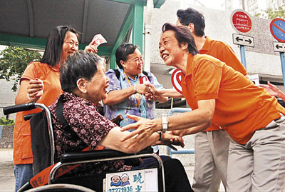 另一位婆婆則扯著嫻姐的衣衫,說自己對嫻姐的支持「至死不渝」,祈求「天地神靈畀多搵票嫻姐等佢入到議會」,她又大讚嫻姐為基層打拚,而她「有病都願意排第二,要好高票才可以當選,所以大家都要投嫻姐」。嫻姐雖然感受到老人家的美意,不過還是要澄清:「我冇病,精神仲好過以前!」