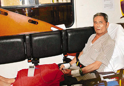【本報訊】一名因患癌在黃大仙醫院留醫的68歲老翁,為盡公民責任參與立法會投票,於昨日下午特地向醫院申請外出2小時。他由家人陪同到所屬九龍西選區位於油麻地碧街51號的一間小學投票,其間突感氣喘不適,家人立即通知票站經理協助召救護車。但老翁仍堅持完成投票程序,才由救護車送到廣華醫院救治。經治理後,老翁再由復康巴士載返黃大仙醫院繼續留醫。
