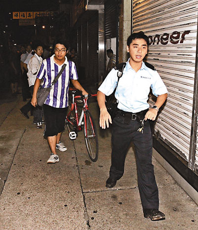 ■騎單車追截匪徒的好市民,協助警員調查。