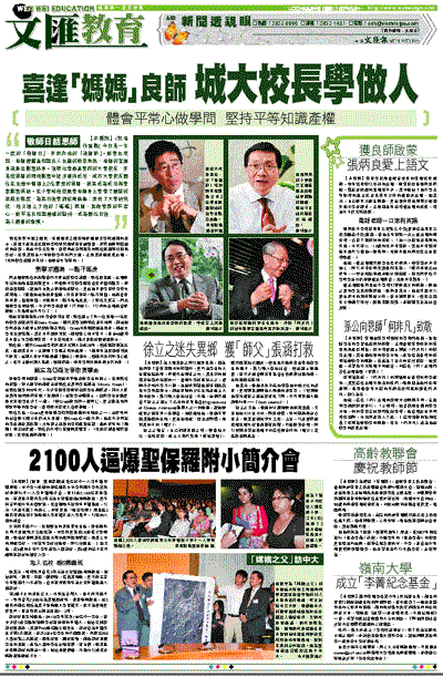 【本報訊】(記者 任智鵬) 今日是一年一度的「敬師日」,亦即內地的「教師節」。對學生來說,老師擔當著知識及人生觀的啟蒙角色,老師的言傳身教甚至影響終身。領導社會最高學府的大學校長,亦是從恩師的栽培影響中逐步邁向成功,城市大學校長郭位在生命中曾遇上2位重要的恩師,對其成為成功科學家影響深遠。在小學時他從數學老師身上學會了嚴謹的思維及態度,為其日後學術發展奠基;而到了大學研究院,他又遇上了他的「媽媽」導師,其做學問的平常心、對平等及知識產權的堅持,成為郭位日後為人處事的楷模。