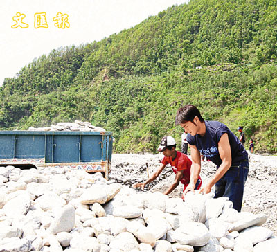■古仔親身嘗試搬沙石。