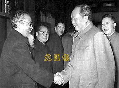 ■馮友蘭(左一)與毛澤東會面。 網絡資料