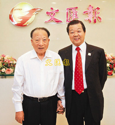 浙江橫店集團創始人徐文榮(左)拜訪本報社長張國良。雙方進行了友好交談,並在本報社內合照留念。本報記者曾慶威 攝