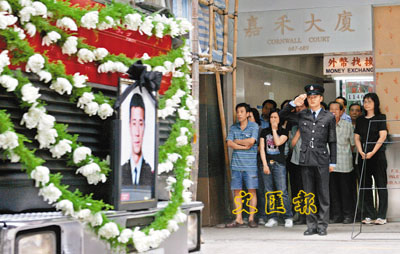 【本報訊】(記者 譚靜雯、聶曉輝)「永別了……救火英雄!」一星期兩個葬禮,同樣的儀式,同樣的錐心哀號……繼陳兆龍後,另一名在旺角嘉禾大廈5級大火中捨己救人的救火英雄蕭永方,昨日在出生入死的同袍、家人和市民的淚水中,走完人生最後一程,長眠浩園。眾人為捨身救人的消防員頌奏英雄輓歌的同時,亦慨嘆說:「如果(兩條寶貴人命)是『學費』的話,我們希望所交的學費到此為止。」經過這次大火後,冀社會未來能汲取教訓,停止悲劇重演。