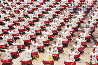 ■北京奧運會開幕式上,2,008名演員擊缶而歌,場面震撼。 新華社圖片