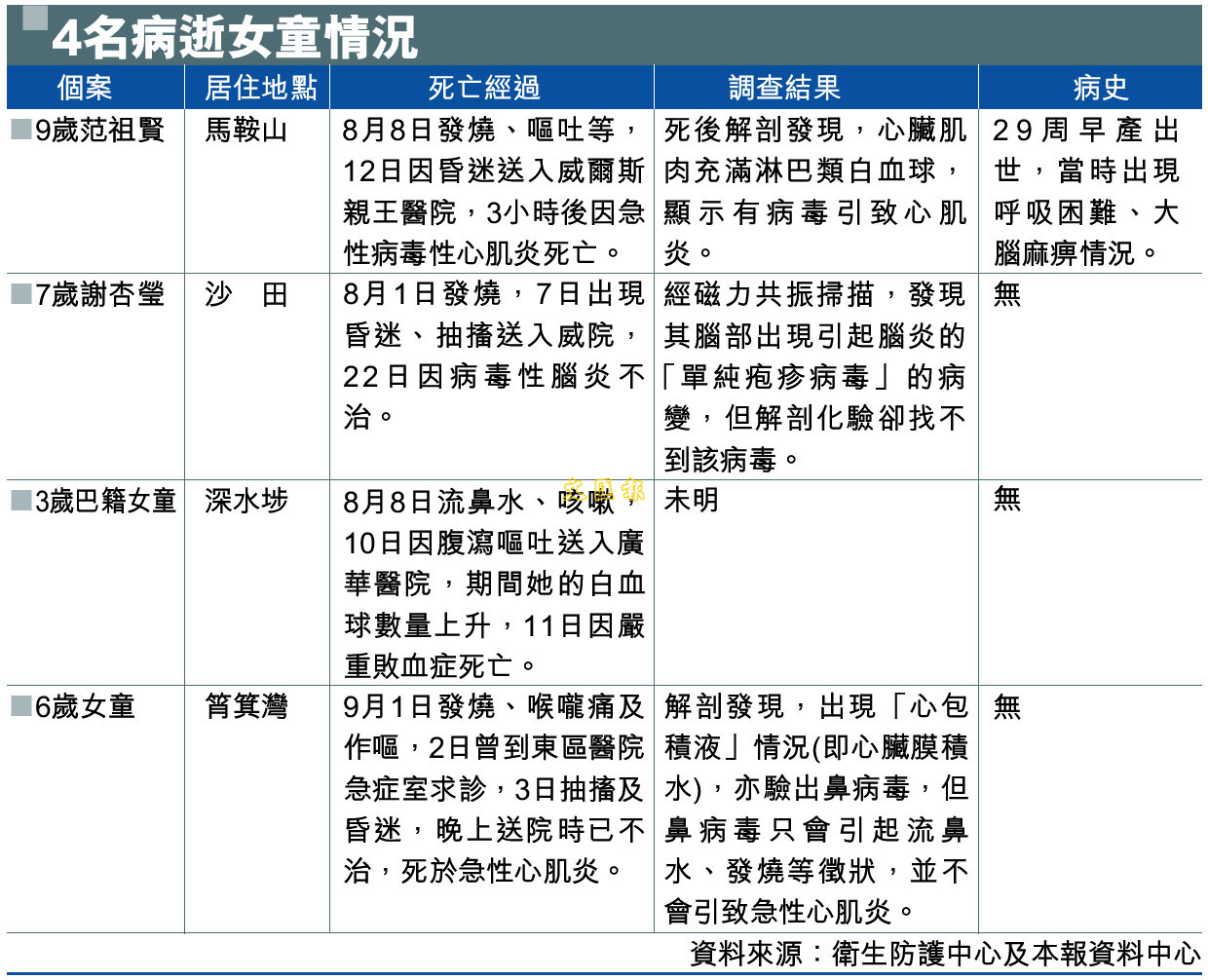 4名病逝女童情況