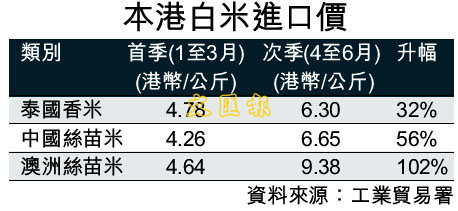 本港白米進口價 (圖)
