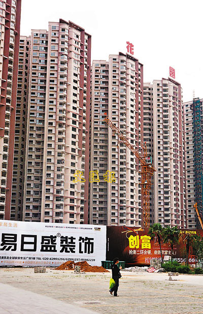 ■西安政府出台政策助熱樓市引發質疑。圖為本月在西安新落成的商品房。資料圖片