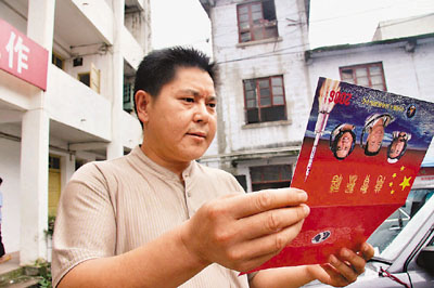 ■與陳全同窗10年的鄭西林接到陳全寄來的珍貴航天明信片。