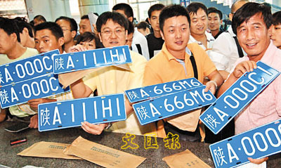16日,西安車管所開始向車主發放自定車牌。 新華社