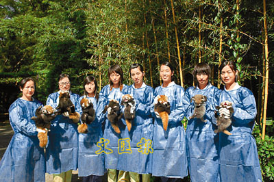 今年該研究中心共有10隻幼仔出生,成活了8隻,創下目前國內小熊貓繁殖最佳水平。據悉,8個小傢伙的母親均為一隻名為「山妹」的小熊貓,這隻小熊貓自2004年誕下三胞胎以來,每年都有多胎生產成功,已成為小熊貓界的「英雄母親」。