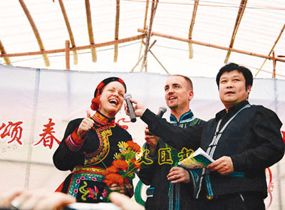 最近兩三年,在福安市舉辦的文藝匯演上,人們總能看到當地「(佘下加田)歌王」鍾石木領著兩位金髮碧眼的「洋弟子」同台獻藝,原汁原味的(佘下加田)歌每每贏得滿堂喝彩。更妙的是,兩位「洋弟子」 陳中磊與史樂莉用地道的(佘下加田)語一展歌喉,為閩東(佘下加田)文化添上了一道亮麗風景。