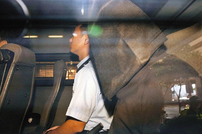 ■涉大浪灣村打死人案的其中一名被告,由警車押解到法院應訊。