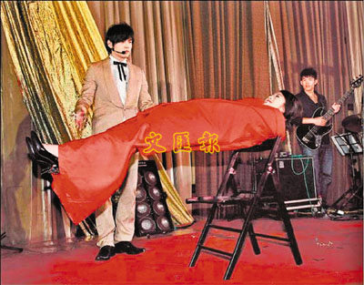 杰威爾的大老闆周董擔任表演嘉賓,一次過表演變出新娘、人體漂浮、還有紙袋變酒杯。在婚禮上表演魔術,周董表示是因為彈頭的要求,說到彈頭扒自己頭先結婚,周董得知時真的嚇傻了,「其實彈頭才小我沒幾歲,看到彈頭閃電結婚,真的出乎意料之外,原本以為彈頭跟皮皮只是玩一玩很快就會分了,沒想到竟然會結婚,也讓我破功送出了歐洲蜜月旅行的禮物,我原先不看好兩人會結婚,所以誇口說如果結婚就送歐洲蜜月旅行,現在讓彈頭賺飽了,不僅有免費的巨星表演、結婚大紅包、還有歐洲蜜月行,看來有個有錢有勢的師父是很吃香的!」