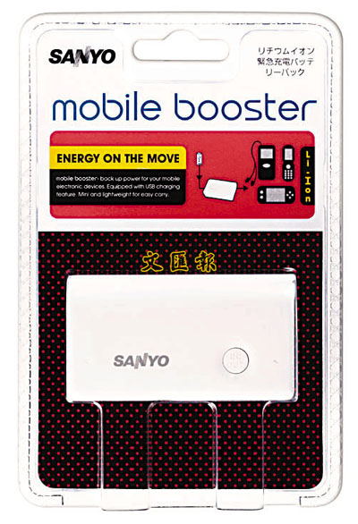 ¡@¹q¤l²£«~·U¨Ó·U´¶¹M¡A¨Ò¦p¤â¾÷¡B¹q¤l¤â½ã¡BÀH¨¹CÀ¸¾÷©ÎMP3µ¥¬y°Ê¹q¤l»ö¾¹¡A³£·|¸g±`¦b¨Ï¥Î¤¤³~¬ðµM¹q¶q¯ÓºÉ¡A¯S§O¬O¦b¾r¾p³~¤¤¡A´Nºâ¦³¨T¨®ª½¬y¹q¥R¹q¾¹¤]¥¼¥²¦³¥Î¡C°w¹ï¦¹µ¥»ö¾¹©M¥Î®aªº»Ýn¡A¤é¥»¤T¬v¹q¾÷³Ìªñ¦b´ä±À¥X¤F¤@´Ú¬y°Ê¥R¹qÄ_¡]«¬¸¹KBC-L3S-SP¡^¡A¥iÀH®É¬°±Ä¥ÎUSB§@¬°¥R¹qªº¬y°Ê¹q¤l»ö¾¹´£¨Ñ«á³Æ¹q·½¡A©Î§@§Y®É¥R¹q¥Î¡C¤T¬vKBC-L3S-SP¬y°Ê¥R¹qÄ_Åé¿n²Ó¤p¡A¥u¦³105 x 160 x 39mm¡A«¶q¥u¦³70§J¡A¤è«KÀH¨Äâ±a¡C¥¦¤º¸m¤F¤@Áû¤é¥»»s³yªº3.7V¾YÅK¥R¹q¦À¡A¹q¶q¬°2500mAh¡A¤@ºÝ¸gUSB-Mini B«¬´¡±qÓ¤H¹q¸£§@¥R¹q©MÀx¦s¹q¯à¡Aº¦¸¥R¹q®É¶¡¬ù»Ý7¤p®É¡A·í¥~¥X¦³»Ýn®É¡A¥i³z¹L¥t¤@ºÝUSB-A«¬´¡¿é¥X¹q¯àµ¹»ö¾¹§@§Y®É¥R¹q¡C