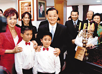 ■06年連戰夫婦訪廈期間欣賞四手連彈後讚不絕口。 資料圖片