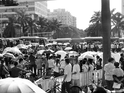 【本報珠三角新聞中心記者黃殿晶、羅冬凱珠海20日電】廣東珠海蓮花路部分商舖,因拆遷問題與政府發生摩擦。商舖業主不滿政府強制拆遷,於9月20日下午上街遊行。整個事件持續2個多小時,交通一度中斷,政府出動大批警察、特警,最終疏散人群,恢復交通。