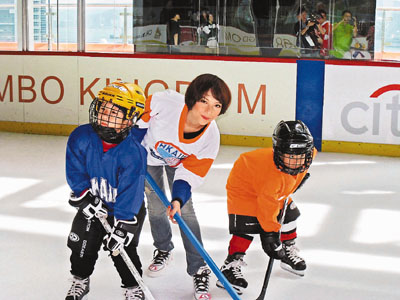 【本報訊】(記者 黃佩麗)衛詩昨日出席一個冰上曲棍球邀請賽活動,雖然以一身冰球球員的裝扮現身,但她指自己一點也不懂得打冰球,衛詩說:「我只懂溜冰,不過技術也不是太好,向前可以,但向後好難。(妳可有興趣學打冰球?)雖然經常聽到打冰球很危險,但現在的裝備都很安全,所以有機會都想試下。」
