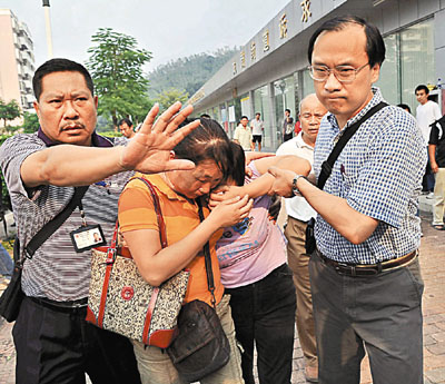 ■遇難港人家屬抵深圳,在特區駐粵辦人員協助下趕赴醫院。 法新社