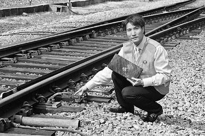 ■港鐵基建執行經理黃永建說,現時港鐵的行車路軌主要採用石屎枕,但轉線路軌位置(俗稱「波口位」)則多用木枕。 本報記者劉國權 攝