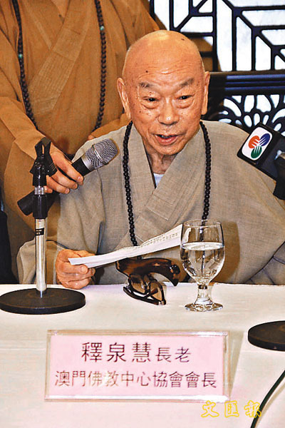 ■澳門佛教中心協會會長釋泉慧講解有關大供天祈福法會的具體情況。 本報澳門傳真
