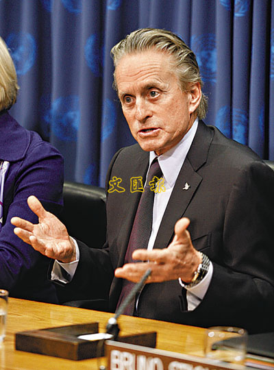 身為聯合國和平大使的米高德格拉斯,曾憑《華爾街》的股壇狙擊手角色摘下金像影帝,至今仍教人津津樂道。前天米高在聯合國總部為禁制核試問題發言,期間突然被記者詢問關於近來金融海嘯的事,對這敏感話題他顯得有點不好意思,連忙表明「那是我廿年前演過的角色而已」。