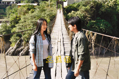 ■吳奇隆(右)和左小清在吊橋上拍攝,驚險萬分。