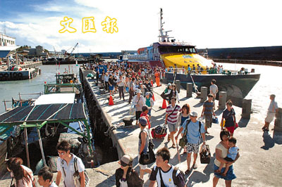 ■27日上午,台灣台東海上交通停駛,近千名旅客從綠島趕回富岡港避颱風。中央社