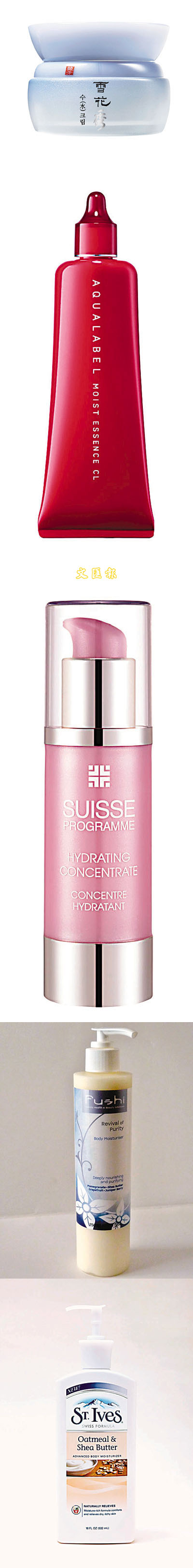 同樣以草藥為材料的雪花秀,今季推出水生面霜,運用五行相生相剋的原理,透過調理使體內「金」氣旺盛,加強水的力量。蘊含金銀花,有清肺熱之效,全面提升「金」氣能量,加強深層肌膚的水分吸收及鎖水能力,另加入玄蔘、白茯苓、白芍及桑白皮等珍貴精華,為肌膚解渴。