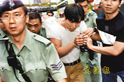■2000年入境處縱火案中,一名涉案男子被警方帶走。 資料圖片