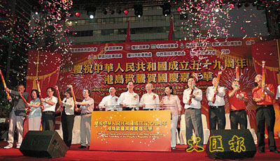 賓主為港島歡騰賀國慶嘉年華舉行亮燈儀式。 本報記者莫雪芝 攝