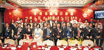 ■香港南區漁民舉行慶祝國慶聯歡宴會,賓主合照。 本報記者 沈清麗 攝