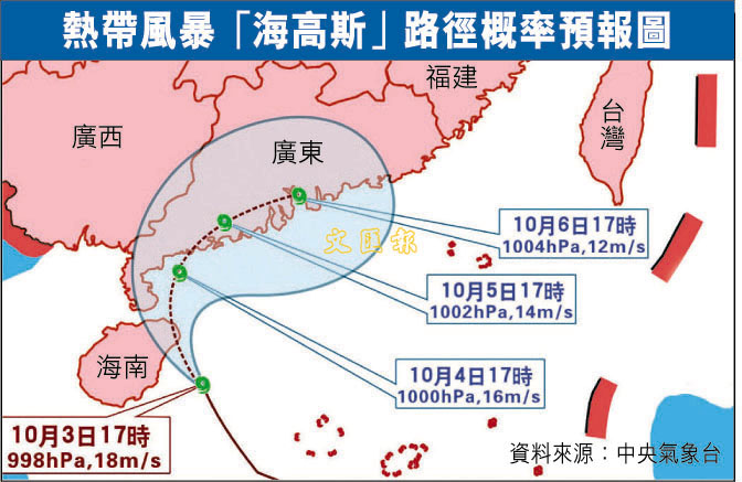 「海高斯」掠海南 回馬槍襲粵 (圖)