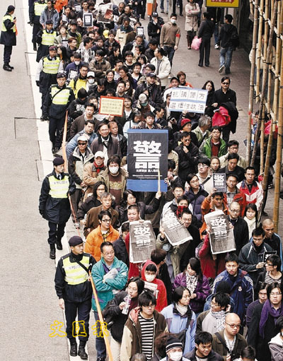 ■淫照事件後,網民不滿警方選擇性執法,曾遊行到灣仔警察總部。 資料圖片