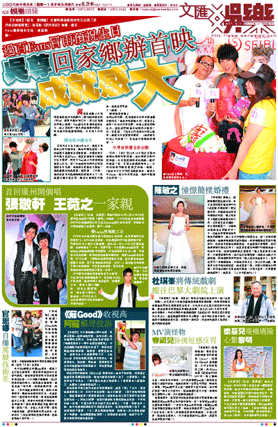 吳尊的正日生日是10月10日,他當日身在杭州舉行演唱會,無法和朋友慶祝,幸好這幾天他都要為電影宣傳,有機會到不同的地方見見Fans,他笑言這就可以順便收生日蛋糕,而昨日Fans送上的壽桃則是他第二次吃,第一次是在兩年前的台灣電視節目中吃過。問他想收甚麼生日禮物?他就藉機為新戲宣傳,他笑說:「不用,他們多買我的戲飛給朋友看就可以了!我這幾天都不在台灣,都未收到朋友的禮物,但最希望和家人一起過。」