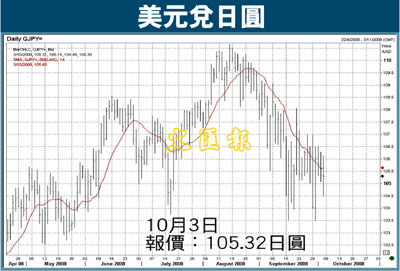 雖然美國國會已通過了美國政府經修訂後的救市方案,但隨著信貸緊縮危機的加劇,部分歐洲金融機構的不穩情況亦已陸續浮現,該情況除了導致全球股市受壓之外,不排除投資者會傾向進一步把日圓相關的利差交易拆倉,這將令市場持續增加對日圓的需求,而美元兌日圓匯價於上周顯著受制於106水平,亦已反映出這個情況。故此預期美元兌日圓於稍後將會反覆跌穿104.00關口。