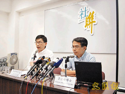 ■蔡海偉(左)表示,弱勢工人缺乏集體議價能力,容易出現薪酬偏低及缺乏勞工保障情況。本報記者鄭啟源 攝
