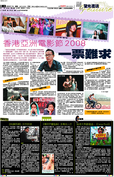 如果僅僅以獎項來計算,上年亞洲電影的確出奇的厲害,再三在國際影展中耀武揚威,連「亞洲電影節」多年搞手麥聖希也不得不驚嘆是個exceptional的年頭。不過實際點來看電影節繼續茁壯成長,如果說上年共有六十三套參展電影是個高峰,今年單是節目已有六十二個,電影更超過八十套,絕對是一山還比一山高。而且今年的重點還在於把片源擴闊,記者翻閱小冊子,發現了不少以前少有甚至從未留意的國家的電影,如印尼、土耳其等,相信這必然是今年為觀眾帶來的全新驚喜。