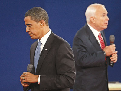 美國總統候選人第2場辯論在當地時間前晚(香港時間昨早)進行,在金融海嘯蔓延全球之際,經濟成為主要議題,民主黨的奧巴馬和共和黨的麥凱恩就如何應對金融危機展開唇槍舌劍。奧巴馬炮轟麥凱恩支持布什政府過去8年放寬對金融業的監管,導致經濟一敗塗地。民意落後的麥凱恩則積極反擊,指奧巴馬曾收取「兩房」巨額捐款。另外,奧麥兩人都同意「股神」巴菲特可能成為財長。