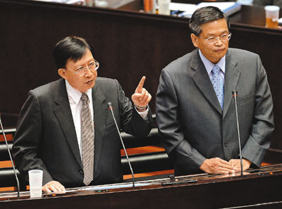 ■「行政院長」劉兆玄(左)與「金管會」主委陳樹。 中央社