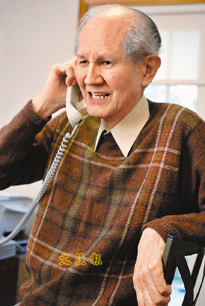 ■下村修接到朋友的電話祝賀。 美聯社