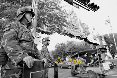■周二騷亂後,曼谷市面大致回復平靜,軍方昨日派出近千名士兵入城維持治安。 美聯社