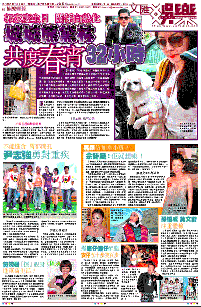 前晚記者連夜守候,終在昨日早上九時發現一輛黑色保母車駛入城城的寓所停車場,六名保安人員出現,等候了一會,保母車離開駛到熊黛林不足數分鐘車程的香閨樓下,記者窮追而至,發現熊黛林由一位保安人員陪同下車,她架著墨鏡,一身白衫卻解開胸口的鈕沒扣好,露出了白色bra top,而她要抱著愛犬又揹著手袋,一見記者即大方地讓記者拍照,記者立即追問她與城城點樣慶祝?她一言不發,但一直展露笑容然後急急腳走入大廈。看她臉容亮麗,未因與城城共慶32小時而疲累,就知幾甜蜜。
